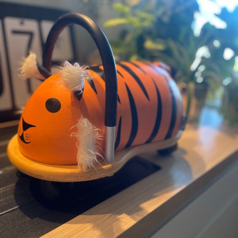 Ungene har vokst fra denne og er klar for nye eiere. Har fått en liten sprekk ved halen, ellers en den i god stand.