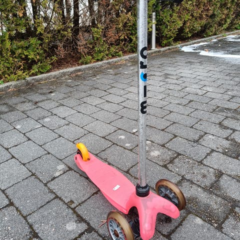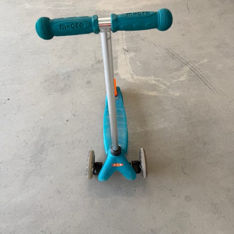 Blå sparkesykkel Micro Mini til barn selges. Det er bruksmerker, se vedlagte bilder. Fungerer som den skal og er perfekt som barnas første sparkesykkel. I følge produsent egnet for barn mellom 2-6 år.