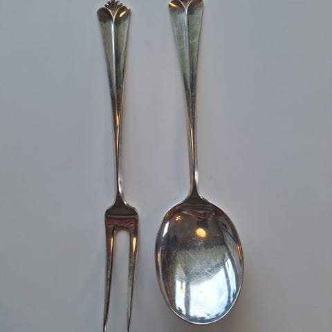 Nederlandske antagelig antikk skje og gaffel i sølv.