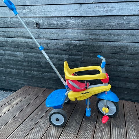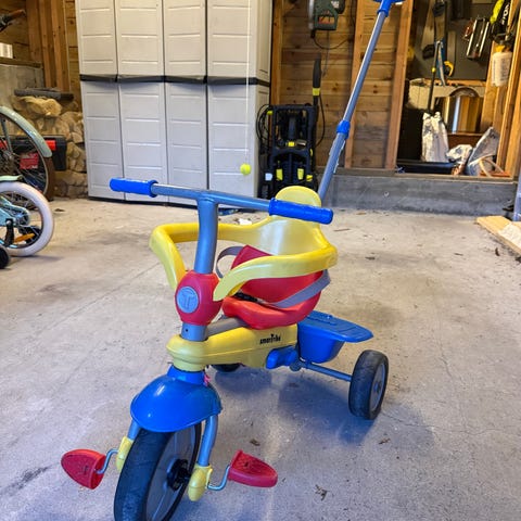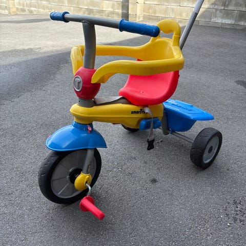 Godt brukt trehjulsykkel med avtagbar foreldrestang.