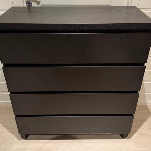 Liten kommode med softclose. Fire skuffer som er like store. Brunsort farge.