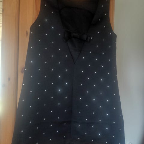 Selger en tettsittende festkjole fra H&M i størrelse M. Kjolen er i mykt velour/fløyelsstoff med små prikker som gir et fint og litt festlig uttrykk. Perfekt til julebord, fest eller en kveld ute.