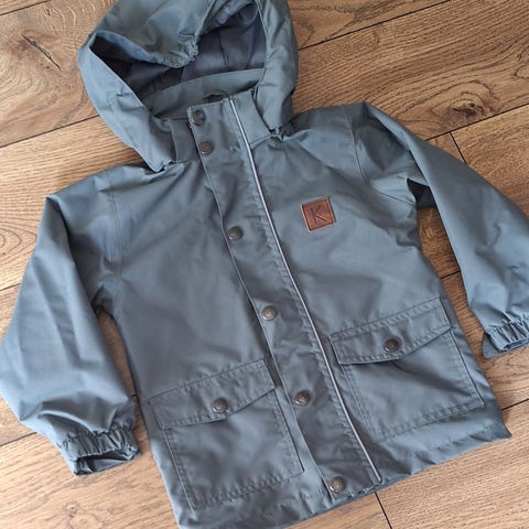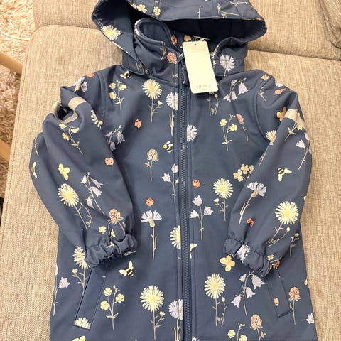 Kuling softshell jakke i str 98 selges, ny med lapp. Har hette og refleksdetalj