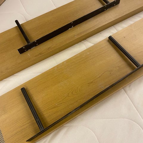 Selger et stilrent veggmontert barskap fra Bolia i mørk trefinish. Skapet monteres på vegg med medfølgende opphengsskinner.
