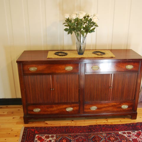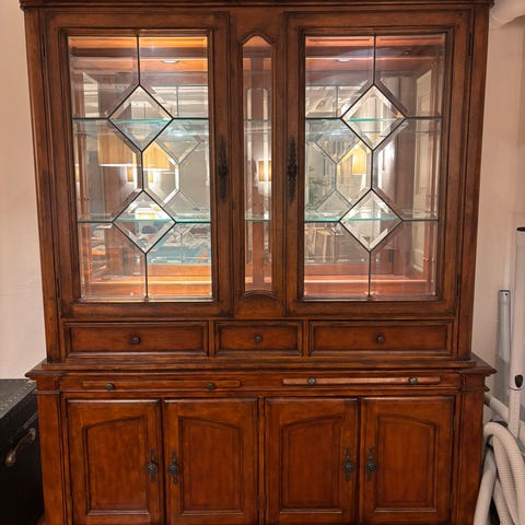 Nydelig restaurert vitrineskap/bokskap fra Knag i Bergen i mørkt treverk med glassdører og vitrinedeler. Har opprinnelig stått på sorenskrivergården på Stord ca. 1870 - 1880 og har lang familiehistorie. Skapet har flere hyller bak glass til oppbevaring og utstilling av servise, pyntegjenstander eller bøker. Nederst er det lukkede skapdører med utskårne detaljer som gir ekstra lagringsplass. Passer til stue eller spisestue der det er behov for kombinert oppbevaring og utstilling.