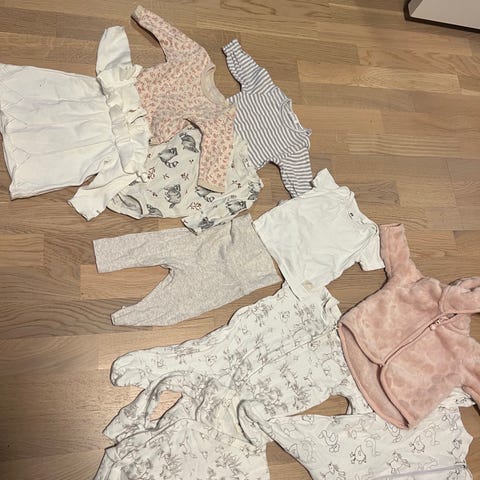 Søt klespakke med ullklær i strl 56. Merker Hust & Claire, Reflex, Joha. Flekk på lysrosa omslagsbody fra Reflex, ellers ingen flekker, og det meste er veldig pent brukt.