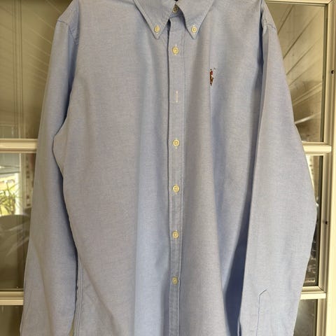 Lexington skjorte for dame i størrelse S. Skjorten er blå og laget av bomull. Den har klassisk krage med knapper, knappelukking i front og brystlomme. Passer til hverdagsbruk eller mer formelle anledninger, og kan kombineres med både bukser og skjørt. Nypris ligger på 1199.