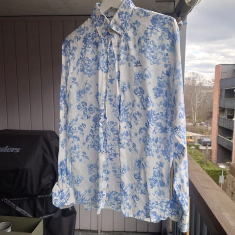 Jean Paul Arnaud skjorte kort erm blå lin herre S