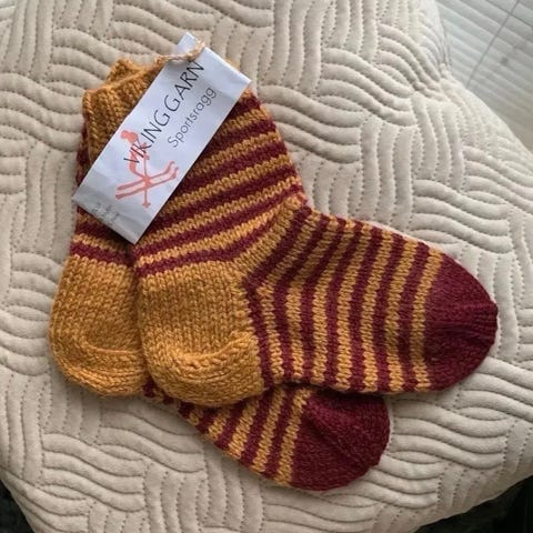 Strikket av viking sportsragg. Ca skostr 30- 34. Sendes med fiks ferdig eller hentes.