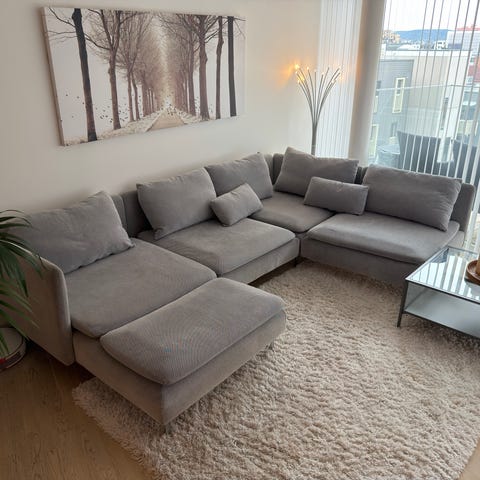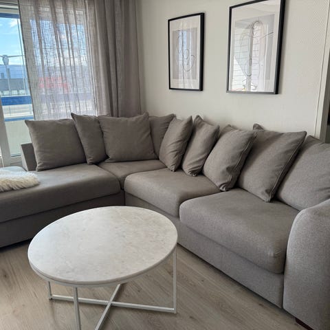 Selger en hjørnesofa fra Møbleringen. Kjøpt for 2 år siden, ingen riper, skader eller flekker. Ingen behov for vask, kan brukes med en gang.