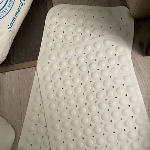 Overflaten har preget fotmotiv som gir ekstra friksjon ved bruk i badekar eller dusj.