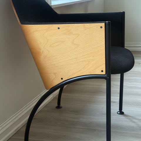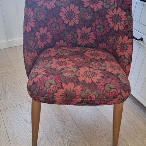 Retro designstol fra 70-tallet med kromunderstell og fargerikt mønster. Komfortabel loungestol i perfekt tilstand.