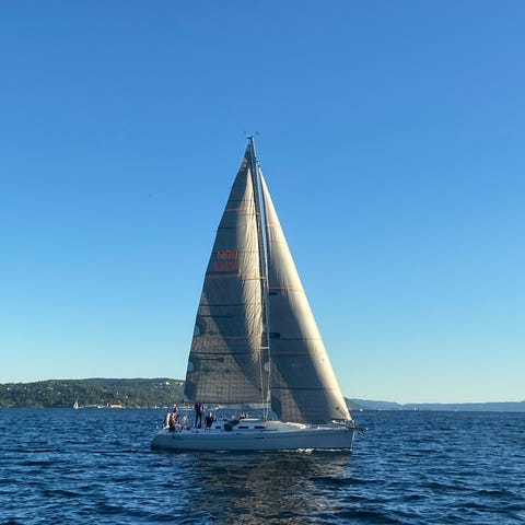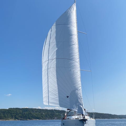 Seilet er hos Hovdan Seil for ettersyn og mindre reparasjoner og vil bli levert ferdig reparert.