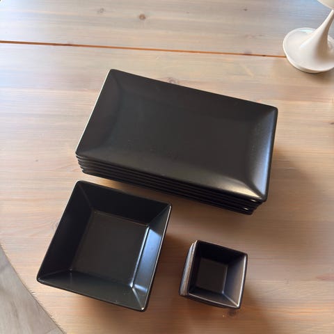 6 stykk AIDA quadro tallerkener 26x26cm (den største på referansebildet)😊 Nypris 139kr per stk.