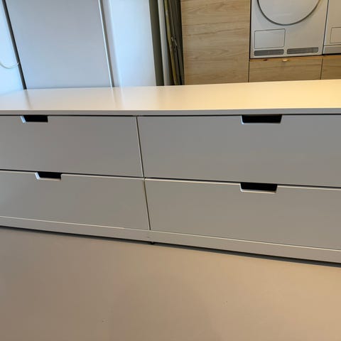 Nordli kommode med god oppbevaring. Brukt til oppbevaring i gangen så noen merker er det men ingen betydning for bruken. Mål ligger ved bilde fra IKEA.