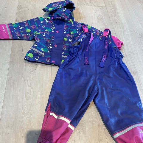 2 stykk Reflex regnjakke og regnbukse størrelse 86