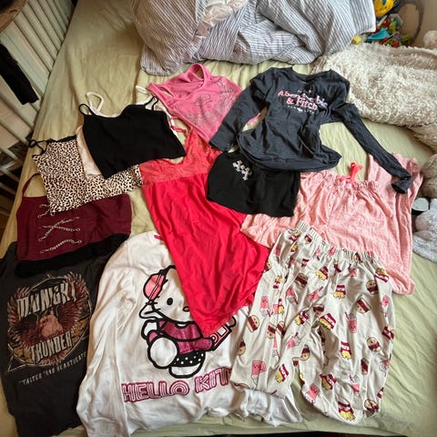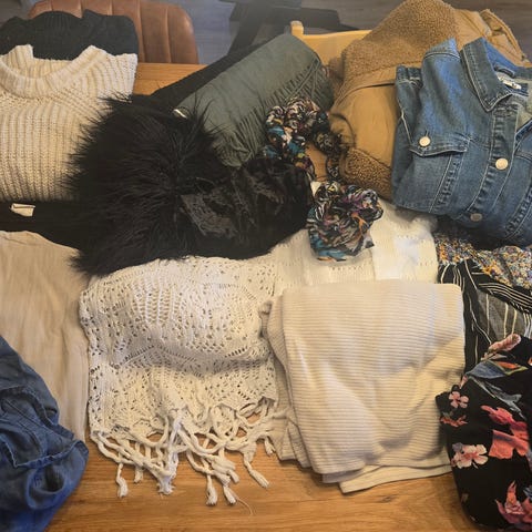 2) Blå kjole med hvite blomster fra Only i str 36. 3) Blålilla genser fra Nelly i str Xs. 4) Offwhite genser fra Nelly i str Xs. 5) Topp i leopard mønster fra Ginatricot str Xs. 6) Bukse fra Nelly Eu 34. Se bilder. Sendes mot porto