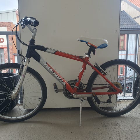 Godt brukt Merida sykkel 24”. Brems foran, ikke pedalbrems. 7 gir. Var på sykkelverksted i sommer, men har godt av en ny sjekk.