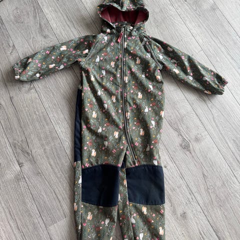 Name it parkdress for barn i størrelse 110. Unisex-modell i flerfarget mønster med rev og blomster. Dressen er laget i polyester med for og har hette, glidelås foran, elastikk ved ermer og ben samt fotstrikker. Forsterkede felt på knær og sete for økt slitestyrke. Egnet som yttertøy i barnehage og utelek.