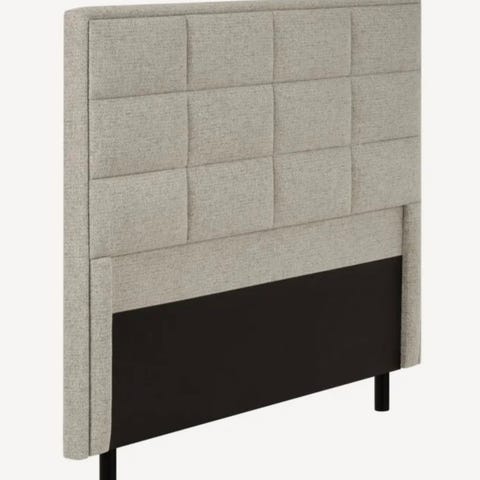 Pent bruk Ellos sengegavl i grå farge. Polstret gavl med knappdetaljer. Passer til dobbeltseng.