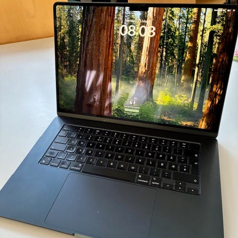 Macen fremstår i svært god stand og fungerer helt som den skal. Skjerm, tastatur og funksjonalitet er i topp stand.
