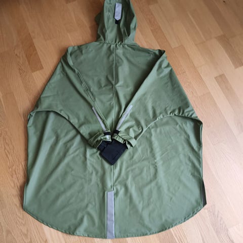 Regnponcho med ermer i mjuk PU knit som gir fint fall. Passformen er laus og størrelsane gode. Dette gjev moglegheit til betre bevegelse, utan at ponchoen flaksar avgårde om du tildømes er ute å syklar.