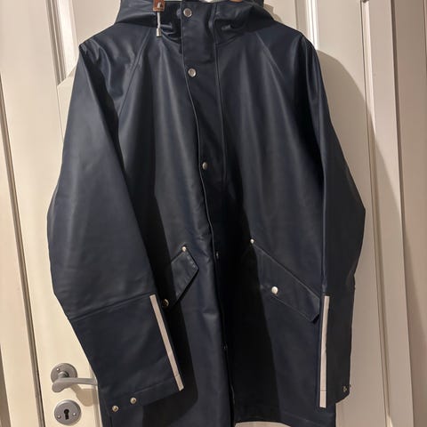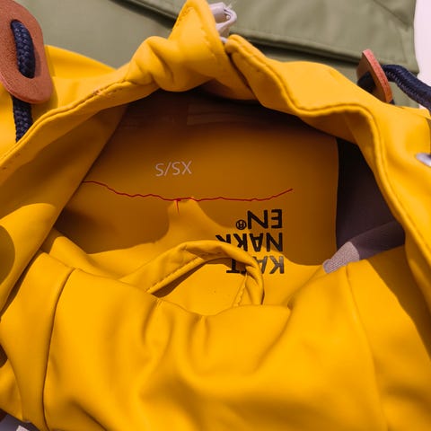 NB! Den kvite (Snø) ponchoen har fått eit lite merke i produksjonen, det er eit svakt avtrykk frå skinnlappen frå snorene på hetta (sjå bilde). Dette påverkar ikkje kvaliteten eller funksjonen til plagget, berre utsjånaden i eit lite område.
