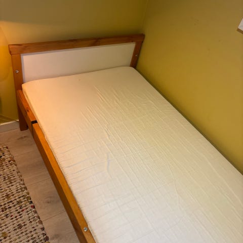200x90, elektrisk justerbar / regulerbar seng i god stand, med motorisert regulering fra OKIN (modell OKIMAT 3L). Både hode- og fotende kan senkes og heves. Enkel å regulere med fjernkontroll.