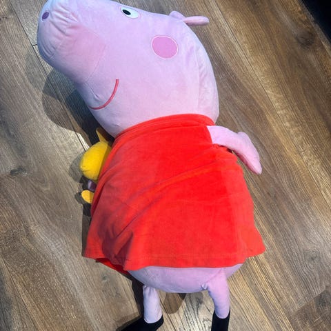 Peppa Gris lekefigur i rakettbil. Plastleke med fastmontert figur i en gul rakettformet bil med hjul. Leketøyet er egnet for rollelek og kan brukes sammen med andre Peppa Gris-leker og kjøretøy i samme størrelse.
