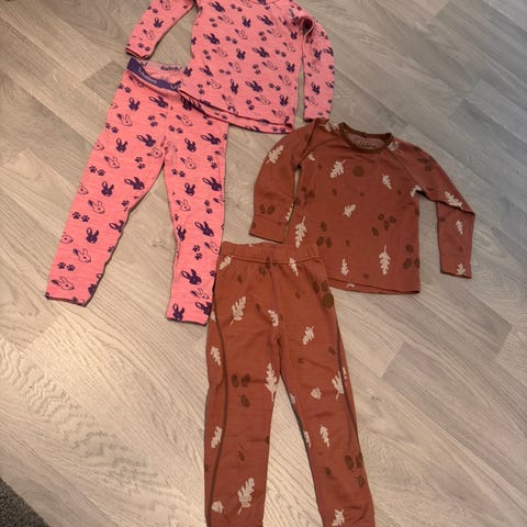 Selger et nydelig sett fra hust & clair i ull/silkeblanding som passer sensitiv hud. Settet har kun blitt brukt som pysj et fåtall ganger og fremstår svært pent. Kun vasket med parfymefri såpe. Sjekk gjerne mine andre annonser for liknende sett og klær, så kan jeg gjerne selge mer i en pakke 😊
