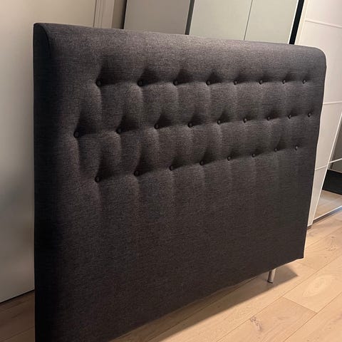 Skeidar sengegavl i polstret tekstil i beige farge. Gavlen har knappestikninger som gir et klassisk og strukturert uttrykk. Passer bak seng og madrasser i tilsvarende bredde.