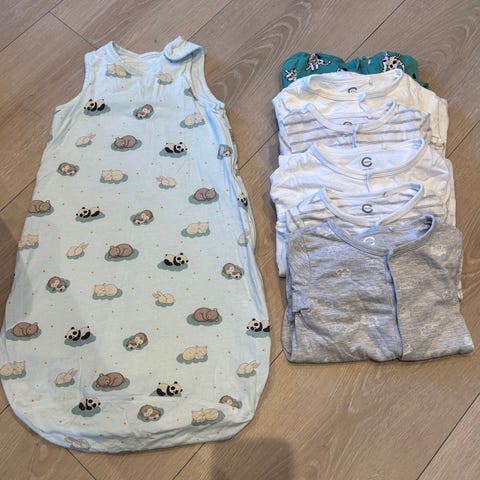3x Ikea soveposer for baby 1 grønn i fleece, 1 blå med dinosaur motiv i bamboo og 1 blå i bomull. Unisex. Fra alder 6-12mnd.