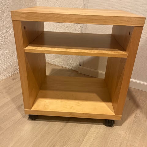 Det er noe riper i møbelet men det kan nok fikses med litt tre olje , Møbelet har hjul så du enkelt kan trille det