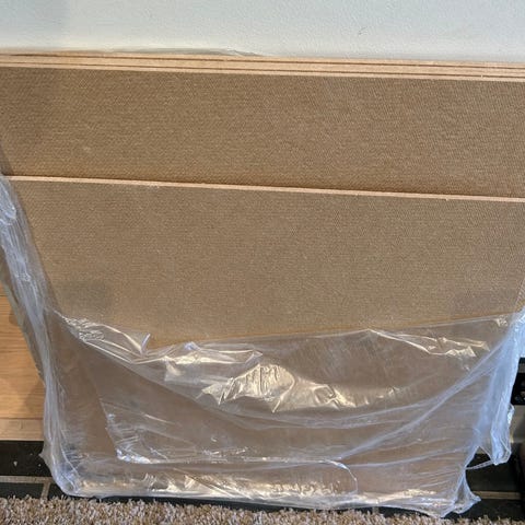 Gir bort en sponplate 22mm for Ø16/17mm rør c/c200 (1820x620mm) fra A. Bergli jeg har til overs
