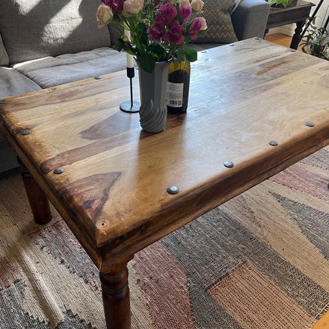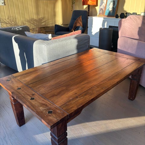 Rustikt og gammelt bord med skuff. Et tøft bord med patina. Brukt i kjellerstua, men må nå vike for et annet bord😌