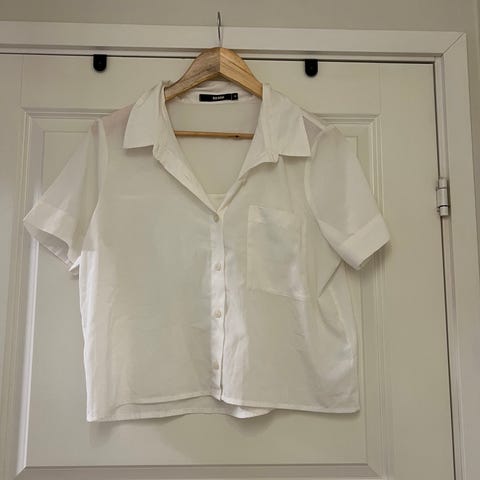 Strykefri bluse men fine gullfarget knapper. Denne er oversized så passer XS-M