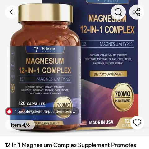 Biyodé Magnesium 12-in-1 Complex kosttilskudd med 90 kapsler. Produktet inneholder et magnesiumkompleks på 700 mg per porsjon, bestående av 12 ulike magnesiumtyper, blant annet glycinat, sitrat, malat, aspartat, glukonat, askorbat, taurat, glukonat, laktat, karbonat, klorid og orotat (utvalg basert på informasjon på emballasjen). Kapslene er laget med vegetabilsk cellulose.