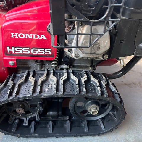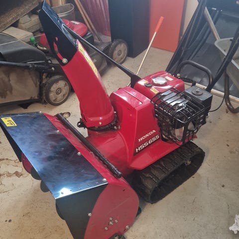 Solid og driftssikker Honda HS 622 med belter. Starter lett – går i gang på første forsøk. Kaster snø ca. 10–15 meter og tar seg svært godt frem i snøen takket være beltedrift.