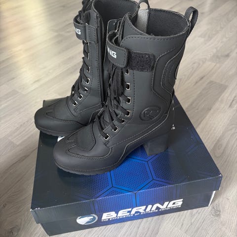 Sidi motorsykkelstøvler i størrelse EU 39. Støvlene er i hovedsak svarte med hvite felt og røde detaljer. De har glidelås på innsiden av skaftet, forsterkninger ved ankel og hæl samt utskiftbare sliders ved tærne. Overdelen er i syntetisk materiale med tekstilfôr på innsiden for økt komfort. Egnet som kjøre- og sportsstøvler til motorsykkel.