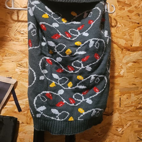 En fin julegenser til ca 8 kg hund. Dessverre er den litt for stor for vår hund. Helt ny