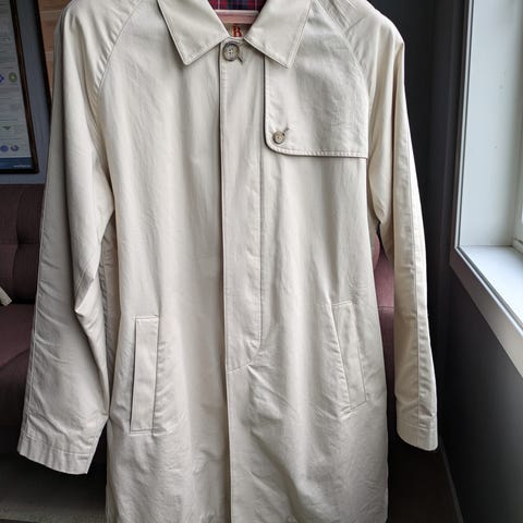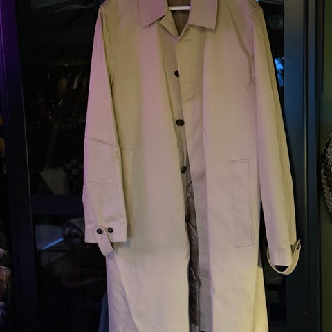 Boss, Hugo Boss, herrejakke, trenchcoat, frakk, overfrakk, uttagbart fôr, beige, sand, herreklær, klassisk, kontor, vårjakke, høstjakke, enkel split, str 46, small, medium