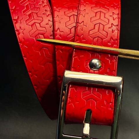 Håndlagde belter, custom made. Denne er IKKE oransje, men snarere saddle tan, dvs lysebrun.