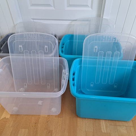 Selger diverse oppbevaringskasser i plast, helst samlet for 300 kr, men er du interessert i enkeltkasser er det bare å ta kontakt.