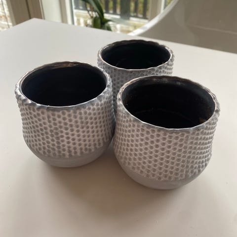 2 stk. DEKORATIVE LAMPER i hvit keramikk. Krukkene har gjennombrutt mønster og dekorative lokk med detalj på toppen. Egner seg som interiørdetaljer på bord, skjenk eller hylle. Kan brukes som rene pyntegjenstander i stue, gang eller andre oppholdsrom.