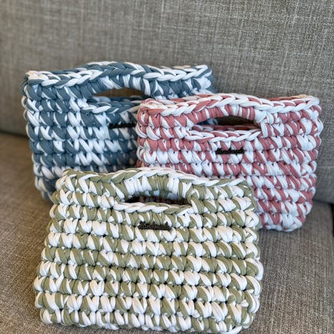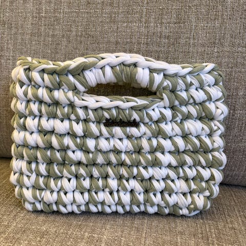 Heklet håndveske, en igjen i hvit farge.