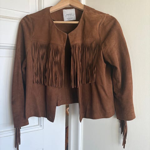 Kul «skinnjakke» med frynser (polyester/microfiber).