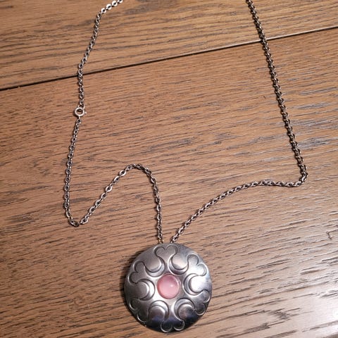 Fant denne blandt eldre smykker. Ståt made in Norway-pewter. Er brukt men ingen skader. 3,5 cm. Gi bud. Frakt 69.