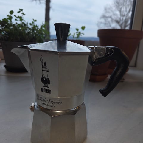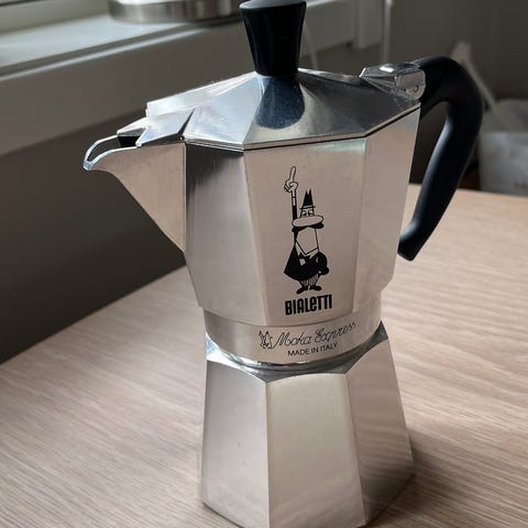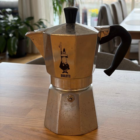Moka Express espressokanne fra Bialetti selges. Lager ca 6 kopper. Kjøpt i Italia. Brukt 5-6 ganger. Selges da den ikke fungerer på min nye induksjonstopp.
