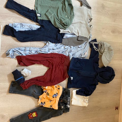 Bukse og pysjamas (bambus) har nupper, jakke har noen flekker.
