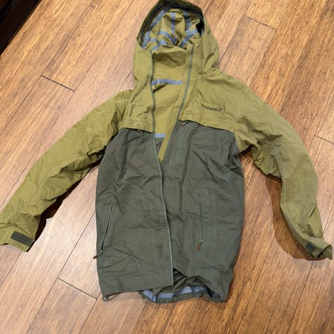 Norrøna Dovre jaktsett bestående av jaktjakke og jaktbukse i størrelse XL. Sett i grønn farge med mørkere forsterkningsfelt på utsatte områder. Jakken har hette og flere lommer, samt nettingfôr på innsiden. Buksen har lommer og forsterkede partier. Egnet til jakt og friluftsbruk i skog og mark. Kan sendes.